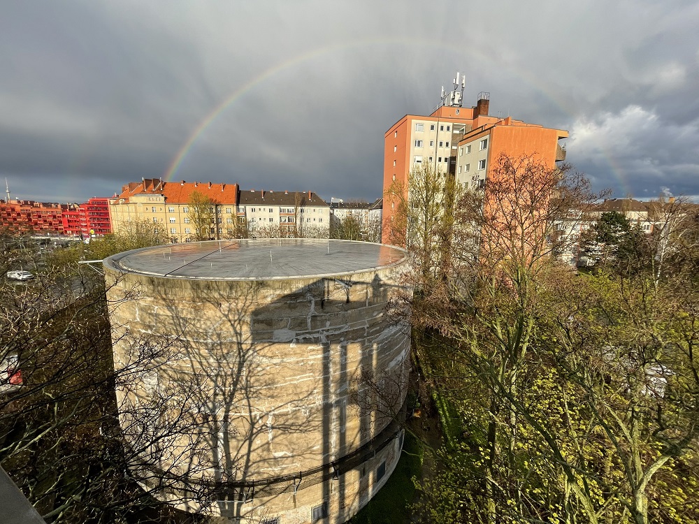 Mit dem 1941 errichteten 12.000 Tonnen schweren Betonzylinder wollten die Nationalsozialisten unweit einer geplanten Nord-Süd-Achse die Tragfähigkeit des Bodens testen. Heute steht das Gebäude unter Denkmalschutz und ist eines der letzten Relikte der menschenverachtenden nationalsozialistischen Stadtplanung.