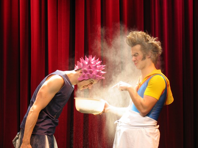 Zwei Köche bitten zu Tisch! Es gibt Apfelkuchen! Fantasie- und humorvoll erschaffen die zwei Clowns ihre kleine Küchenwelt, die viel Charme und Magie versprüht. Um die Grundlage des Teiges zu rühren, verflechten sie geschickt artistische Kunststücke mit tänzerischen Choreografien und führen größenwahnsinnig ihre außergewöhnliche Küchentauglichkeit vor.