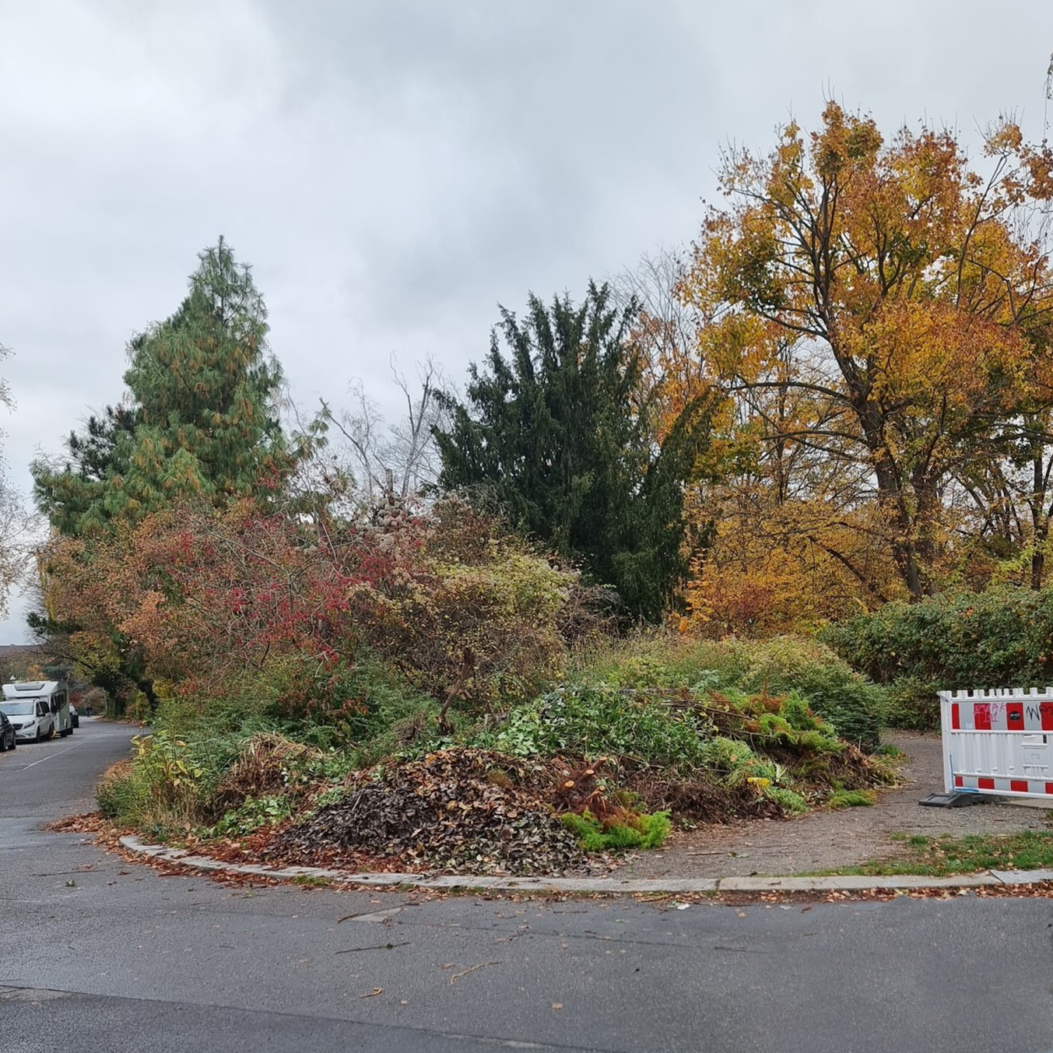 Dabei handelt es sich um illegal abgeladene Laub- und Gartenabfälle, die sich in der Folge immer wieder auf dem Gehweg verteilen. Dies ist nicht nur unansehnlich, sondern stellt auch eine Gefährdung für Fußgänger_innen dar, da der Gehweg nicht mehr barrierefrei nutzbar ist. Zudem handelt es sich bei dem Grünanlage Parkring um ein Gartendenkmal.