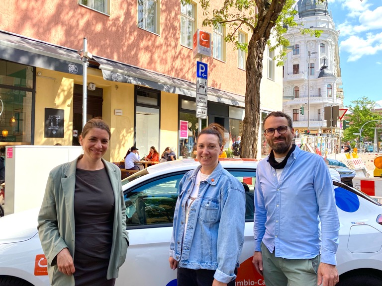 In Anwesenheit der Bezirksstadträtin Dr. Saskia Ellenbeck, Dr. Benjamin Rabenstein, fachlicher Mitarbeiter in der Gruppe Neue Mobilität der Senatsverwaltung für Mobilität, Verkehr, Klimaschutz und Umwelt (SenMVKU), sowie Mailin Finke Branquinho, Assistentin der Geschäftsführung Cambio Carsharing, wurde am 19. Juni 2025 eine neue Carsharing-Station der cambio Berlin CarSharing GmbH in Tempelhof-Schöneberg eröffnet.