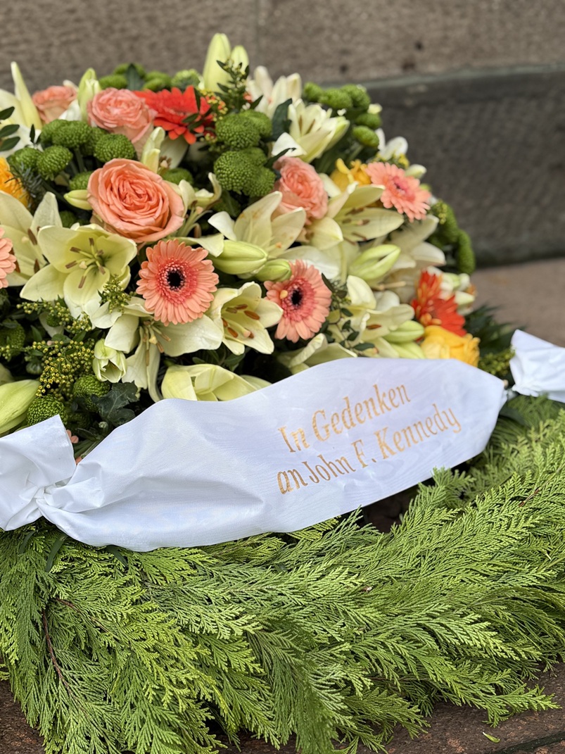 „Jedes Jahr legen wir diesen Kranz nieder, um einer bemerkenswerten Persönlichkeit zu gedenken, deren Worte und Taten die Geschichte unserer Stadt und der Welt nachhaltig geprägt haben. Kennedys Wirken erinnert uns daran, dass Freiheit kein Selbstläufer ist und dass ihr Schutz gemeinsames Engagement erfordert, besonders in Zeiten politischer Umbrüche, Krisen und Debatten über Demokratie, Rechtsstaatlichkeit und soziale Gerechtigkeit. Seine Botschaft bleibt sowohl Mahnung als auch Auftrag, besonders dann, wenn neue Herausforderungen entstehen. Unsere Welt braucht auch künftig Persönlichkeiten wie John F. Kennedy – Menschen, die in der Lage sind, Gräben zu überwinden und andere wieder zusammenzubringen und mutig voran gehen. John F. Kennedy steht wie kein Zweiter für Freiheit, Frieden und Demokratie.“