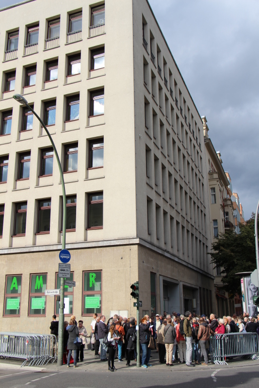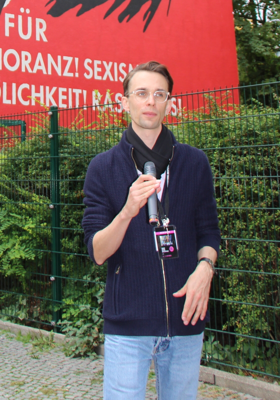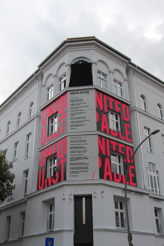 Verschiedene Installationen und Bilder internationaler Künstler_innen waren am Tag der Eröffnung des Museums entlang der Bülowstraße zu bewundern.