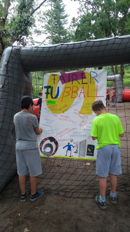 In verschiedenen Aktionen wurden die neu erworbenen Kenntnisse und Informationen in FEZitty angewandt und transportiert. Zum Beispiel überprüften die Kinder als Bewohner der Stadt die Stände in FEZitty auf ihre Fairness, bastelten recycelte Halsketten für den FEZitty Supermarkt und übergaben fair gehandelte Fussbälle an die Bürgermeisterin für die Sportecke.