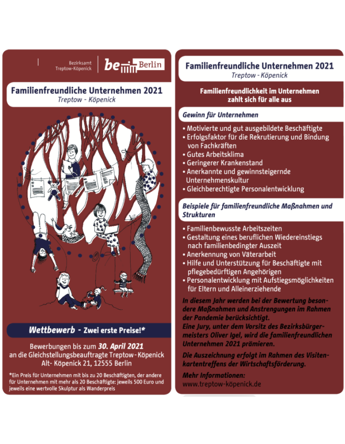 Das Bezirksamt Treptow-Köpenick startet wieder den Wettbewerb „Familienfreundliche Unternehmen in Treptow-Köpenick“!