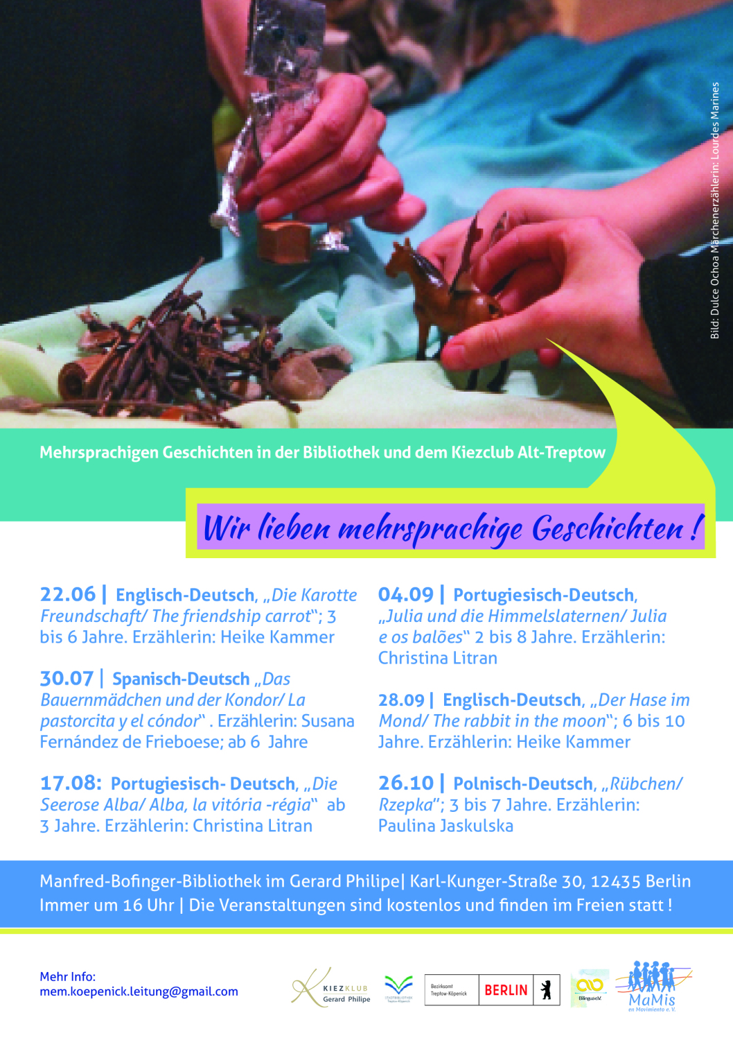 Wir möchten Euch zu einer Reihe von zweisprachigen Erzählungen einladen, die Euch die Möglichkeit geben, unterschiedliche Sprachen zu erleben und verschiedene Kulturen der Welt kennenzulernen.
