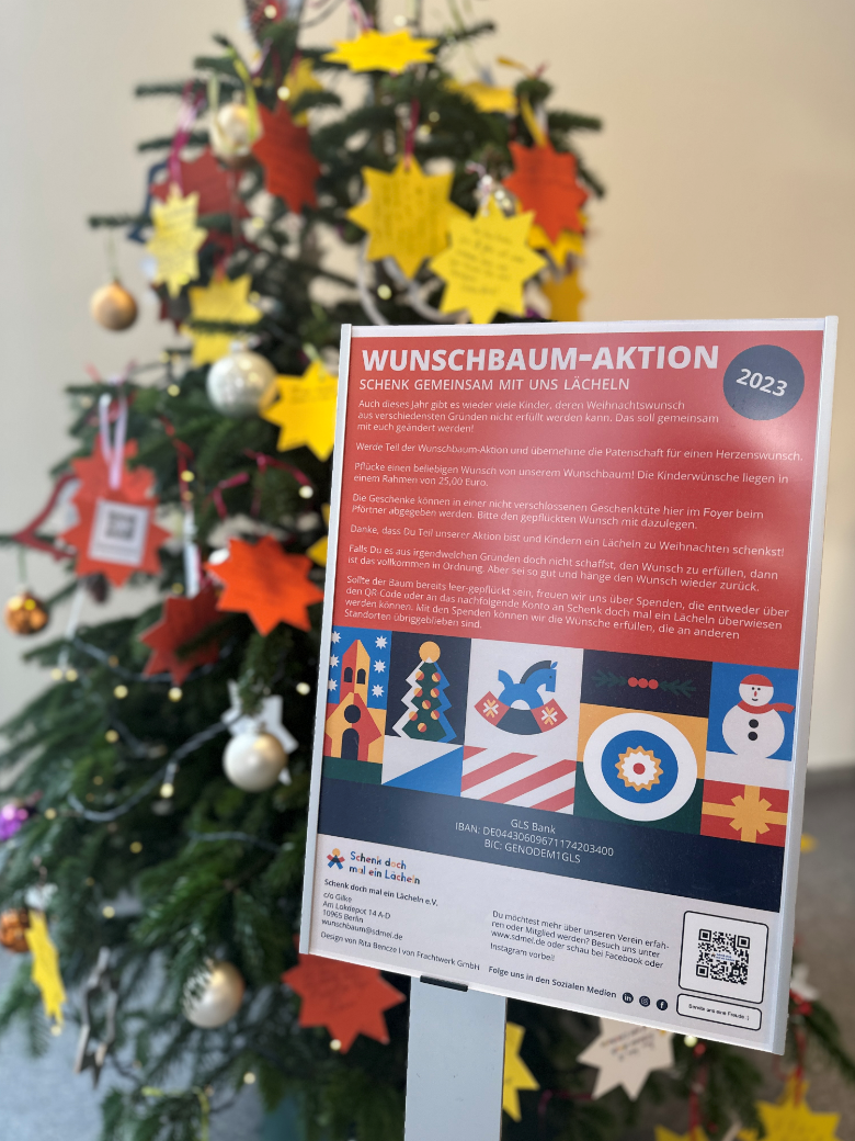 Die Wunschbäume sind eine Initiative des Vereins “Schenk doch mal ein Lächeln e. V.”, der es sich zur Aufgabe gemacht hat, Kindern aus sozial benachteiligten Familien oder Einrichtungen im Bezirk eine Freude zu bereiten. Die Wünsche der Kinder wurden auf Sterne geschrieben, die nun an den Zweigen der Bäume hängen. Die Wünsche reichen von Spielzeug über Kleidung bis hin zu Büchern oder Gutscheinen.