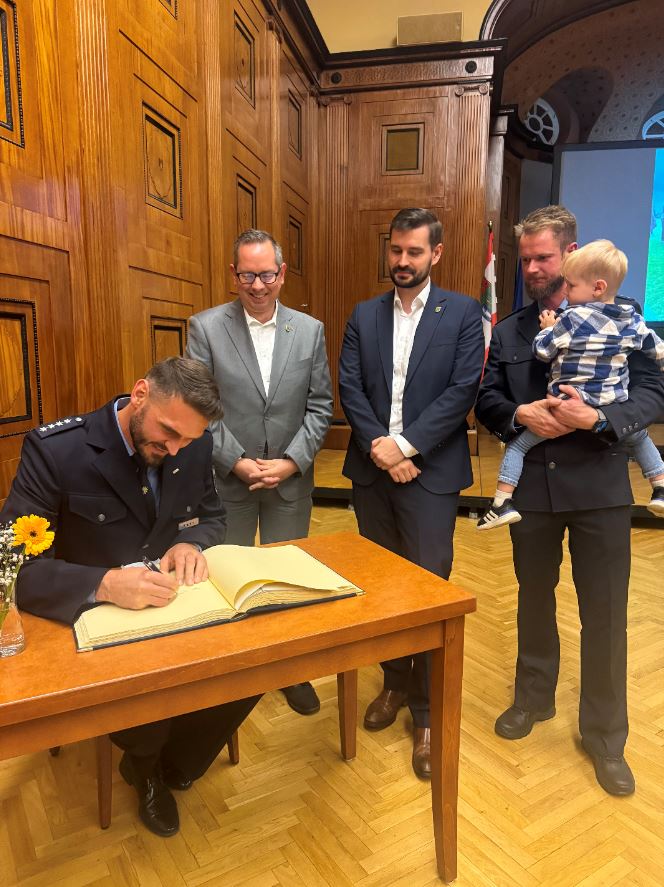 Im Rathaus Treptow fand gestern eine feierliche Ehrung für zwei herausragende Polizei-Fußballer statt. Danny Kempter und Philipp Kulecki, beide vom Abschnitt 36 in Köpenick, wurden von Bezirksbürgermeister Oliver Igel und Marco Brauchmann, Bezirksstadtrat für Weiterbildung, Schule, Kultur und Sport, für ihre Leistungen bei der 18. Europäischen Polizeimeisterschaft im Fußball der Männer ausgezeichnet.
