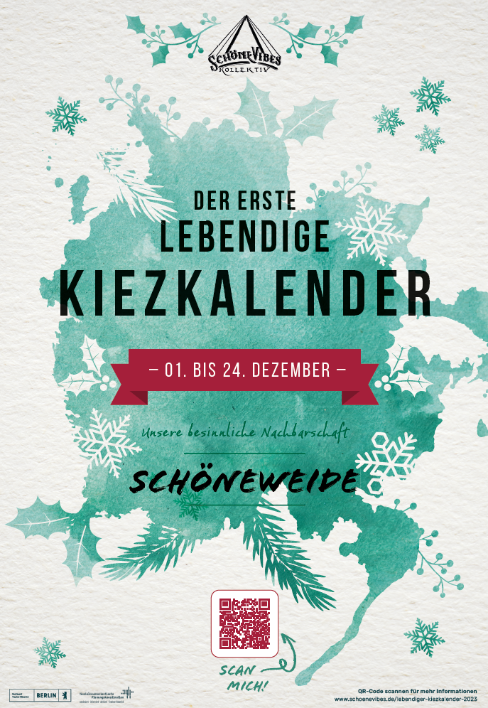 Organisiert und begleitet wird der „lebendige Kiezkalender“ vom SchöneVibes Kollektiv e.V., einer gemeinnützigen Nachbarschaftsinitiative aus Schöneweide, welche sich für eine Vernetzung der Menschen aus dem Kiez und die Förderung von Umweltbewusstsein, Bildung und Sozialem sowie der Kulturvermittlung einsetzt. Die Arbeit am Kiezkalender begann im September und die ganze Nachbarschaft konnte sich aktiv beteiligen: mit Hilfe eines Anmeldeverfahrens und öffentlicher Treffen konnten sich Haus- und Hofgemeinschaften, sowie Vereine und Organisationen einen Tag im Adventskalender aussuchen und ein Programm vorschlagen.