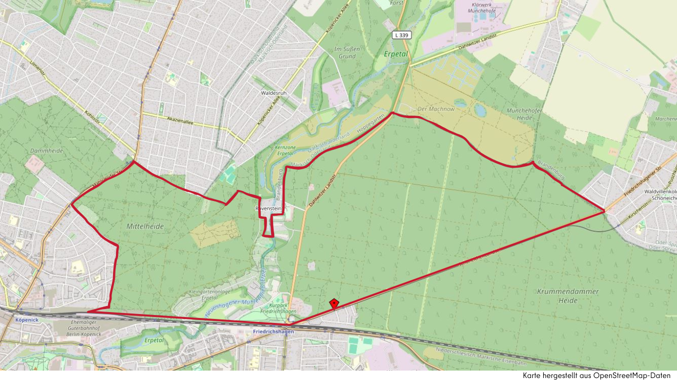 Die Überwachungszone im Bezirk Treptow-Köpenick ist begrenzt nördlich durch die Landesgrenze zu Brandenburg (Landkreis Märkisch-Oderland) sowie im westlichem Verlauf durch die Bezirksgrenze zu Marzahn-Hellersdorf, westlich durch die Mahlsdorfer Str., Genovevastr., Däumlingsweg sowie die Forstflächen Jagen 319 und 320, südlich durch die S- und Regional-Bahn Trasse, östlich durch die Schöneicher Str., Schöneicher Landstr. sowie die Landesgrenze zu Brandenburg (Landkreis Oder-Spree).