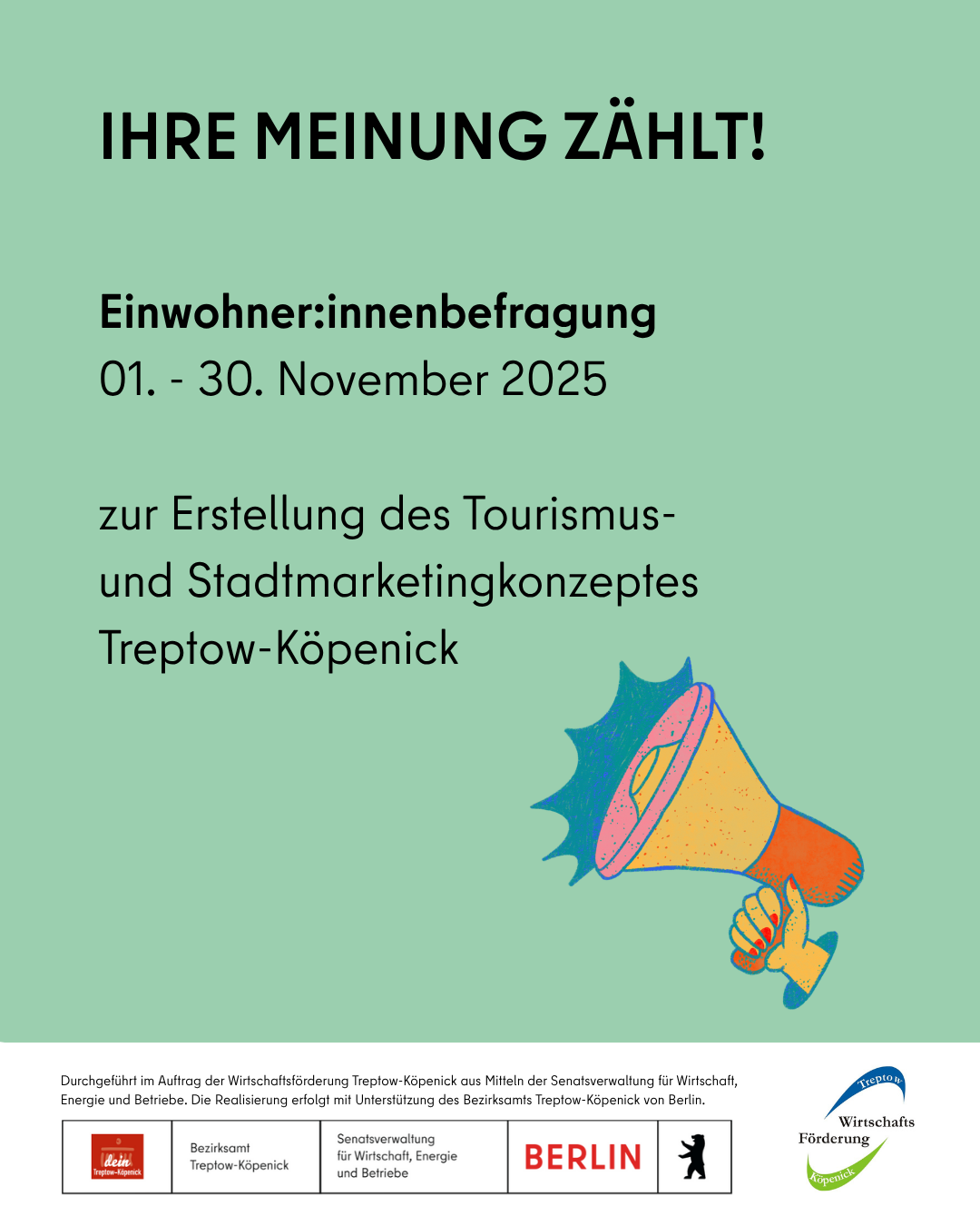 Ein wichtiger Bestandteil des Prozesses ist die aktive Beteiligung der Öffentlichkeit: Vom 1. bis 30. November 2025 sind sowohl Einwohner:innen als auch Gäste des Bezirks eingeladen, ihre Einschätzungen und Ideen zur Zukunft des Tourismus und Stadtmarketings einzubringen. Die Online-Beteiligung ist ab dem 1. November über die Plattform mein.berlin.de erreichbar.