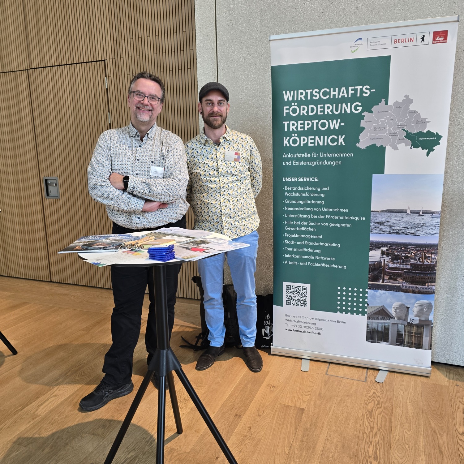 Unser Bezirk war nicht nur bei der Wirtschaftskonferenz dabei und beteiligte sich an den Diskussionen über Deep-Tech und urbane Resilienz, sondern zeigte mit einem eigenen Präsentationsstand der Wirtschaftsförderung auch, dass Treptow-Köpenick als führender Innovationsstandort mit dem High-Tech-Standort Adlershof und dem aufstrebenden Zukunftsort Schöneweide Raum für Spitzenforschung und Industrie bietet.
