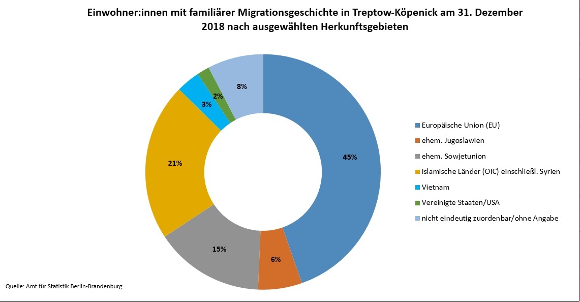 Einwohner:innen mit familiärer Migrationsgeschichte in Treptow-Köpenick nach ausgewählten Herkunftsgebieten
