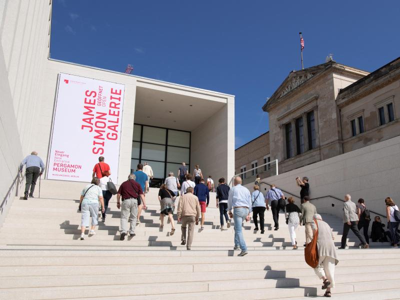 The James Simon Gallery on Museum Island is the hub of the World Heritage-listed ensemble of the Pergamon Museum, the Old National Gallery, the Bode Museum, the Old Museum and the New Museum.