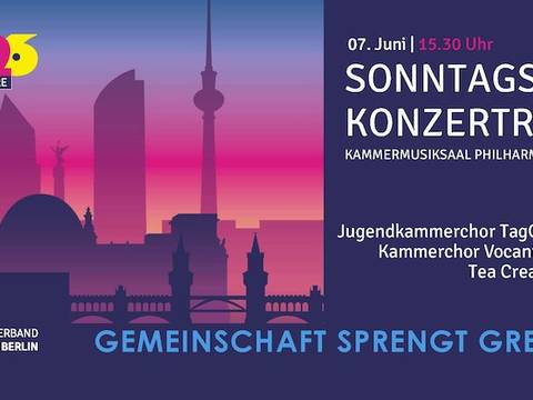 Ein Schulchor, ein Jazzchor, ein klassischer Kammerchor – auf den ersten Blick eine unvereinbare Kombination. Doch die TagCHOReaner, die Tea-Cream-Singers und der Kammerchor Vocantare Berlin brechen bewusst mit Grenzen, um Vielfalt zu feiern und die Stärke... moreabout: Sonntagskonzertreihe Nr. 6 | Gemeinschaft sprengt Grenzen