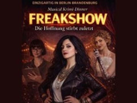 „Freakshow – Die Hoffnung stirbt zuletzt“ Hier trifft Musical auf Krimi-Dinner – einzigartig in Berlin-Brandenburg. Erlebe eine interaktive Show von Freshdina, die ihre eigene Geschichte live auf der Bühne spielt – inklusive Originalsong „Freakshow“. Du... moreabout: Musical Krimi Dinner - Freakshow – Die Hoffnung stirbt zuletzt