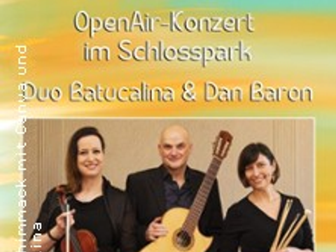 Lateinamerikanische Impressionen für die ganze Familie, live im Schlosspark. Das Duo Batucalina, ungewöhnlich besetzt mit Geige und Percussion, verbindet brasilianische Tradition mit zeitgenössischen Einflüssen und schafft eine mitreißende Fusion aus... moreabout: Duo Batucalina & Dan Baron - Schlosspark-Open-Air