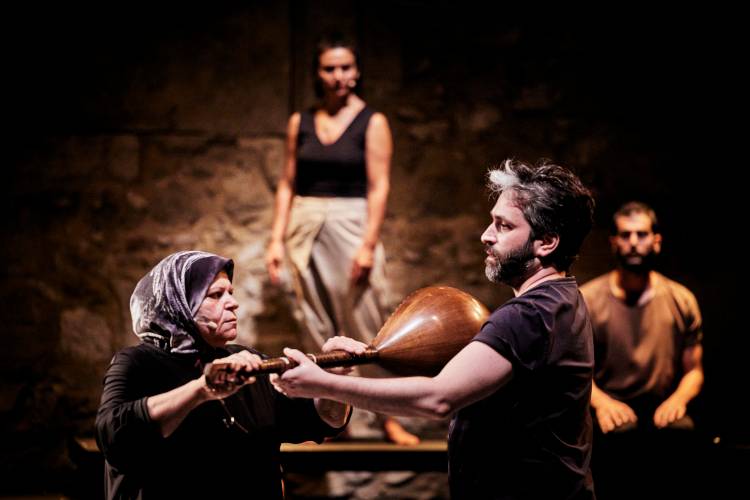 A tribute to mothers, their resilience and their struggles: inspired by his own family history and the collective memories of the Lebanese people, Ali Chahrour explores the power of love and tenderness in the face of loss and loneliness.Following “Iza Hawa” and “When I saw the Sea”, HAU Hebbel am Ufer is now also presenting Ali Chahrour’s widely toured work “Told by my Mother”. The piece, created in 2021, has been performed at international festivals and venues – and is now set to be staged for the last time – in Berlin. Choreographer and dancer Ali Chahrour paints a raw and deeply moving portrait of the mothers of Lebanon, without embellishment. But the images of mourning and sorrow cannot be separated from the current horrors in the Middle East.Without sugar-coating anything, the dancer and choreographer Ali Chahrour paints an unvarnished and deeply moving portrait of the mothers of Lebanon – a country that has been scarred by conflict for years, threatened by attacks from Israel and suffering under pressure from neighbouring Syria. “Told by My Mother” is rooted in authentic, intimate and deeply moving stories – stories of iconic mothers and their families, some of whom have been scattered or have disappeared. These are narratives preserved so that memory lives on and what remains is honoured.One of the three central stories in “Told by My Mother” tells of Ali Chahrour’s aunt Fatima, who lost her son in Syria in 2015. Until her death in 2018, she searched tirelessly for him, without ever gaining certainty about his fate.“I believe that my aunt Fatima did not die of the cancer that ate away at her lungs. She died the moment she lost hope of finding her missing son Hassan. An autopsy would have shown that her heart was no longer beating between those maternal ribs,” says the choreographer.The live music by Ali Hout and Abed Kobeissy (percussion and buzouk) draws on the songs of those very families, sung in moments of both grief and joy. Thus, a vibrant anthology of the cultural heritage of Arab folk songs unfolds before the audience. The meandering songs reflect the endless pain of women who carry within them both unshakeable hope and paralysing fear. And yet, amidst all the suffering, moments of hope shine through.