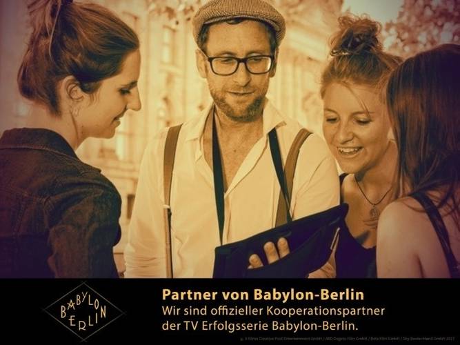 Babylon Berlin und entführen Sie in die Welt des Gereon Rath. Vor Ort zeigen wir auf iPads exklusive Filmausschnitte aus der Serie und faszinierende Originalaufnahmen aus den Zwanziger Jahren. Erfahren Sie von uns Hintergrundgeschichten zu den Dreharbeiten, den Schauspielern und den Zwanziger Jahren in Berlin. Wo speist Gereon Rath zu Mittag? Welche Sehenswürdigkeiten ersetzen das Berliner Polizeipräsidium, die „Rote Burg“? Wie ist der Alexanderplatz Teil der Serie geworden? Wo wurden die Toten untersucht und ausgestellt? In welchen Bars und Clubs tanzen die Darsteller der Serie – und wo spielte sich das Nachtleben der Zwanziger Jahre wirklich ab?