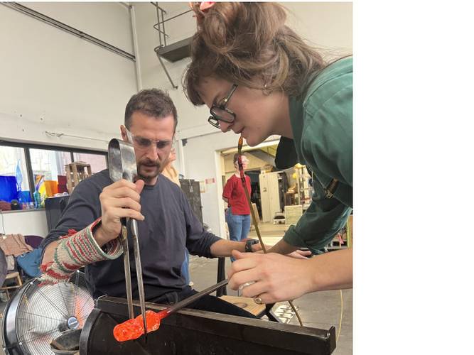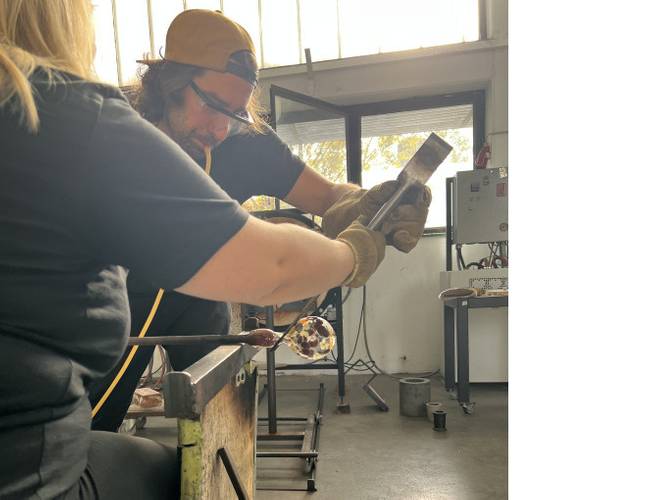 On Saturday, you will step into the hot shop and blow and shape your own colored glass cup, guided by our team using fire, breath, and time-honored glassblowing techniques. No experience needed — just curiosity and a steady hand.