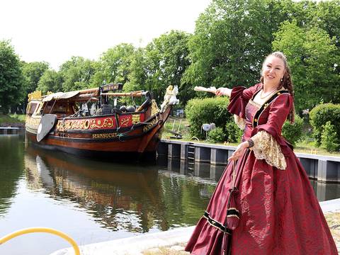 »Louise Henriette von Oranien« erzählt Geschichten aus der Zeit der »Statenjacht Sehnsucht« – erst im Schlosspark, dann an Board des historischen Schiffes. Hier wird ordentlich Seemannsgarn gesponnen. Zusätzliche Informationen: Treffen um 13:45 Uhr am... moreabout: Des Kurfürsten Seemacht