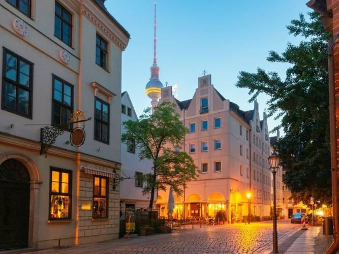 Auf Ihrem abendlichen Spaziergang erleben Sie das Nikolaiviertel. Es ist das älteste und charmanteste Viertel von Berlin! Auf unserer magischen Abendtour erlebst Du die funkelnden Lichter und die historische Atmosphäre dieses einzigartigen Ortes. Ein Highlight unseres Abends wird der Blick auf die Nikolaikirche sein, deren Türme sich majestätisch gegen den Abendhimmel abheben. Die Kirche, ein Meisterwerk der Backsteingotik, lädt mit ihrer ruhigen Ausstrahlung zur Besinnung ein und bietet einen wunderbaren Rahmen für unvergessliche Erinnerungen.