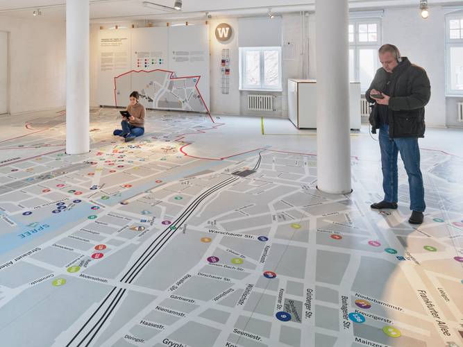 The exhibition "ortsgespräche" was created in 2012 as a participatory project with residents from Friedrichshain-Kreuzberg and was shown on two floors of the museum until 2017. In 2016, "Ferngespräche" was added. "Ortsgespräche" shows that urban history is always also migration history and makes the significance of migration for the city and its places visible. With a digital relaunch, the museum, together with the Berlin-based company "shoutr labs," is now making all parts of the "ortsgespräche" exhibition available to experience again through the media. Using your own smartphone or borrowable multimedia devices, it is possible to explore various places in the district historically on a city map, discovering them from the perspective of residents and refugee new Berliners. In the section ortsgespräche, people from Kreuzberg and Friedrichshain will guide you on personal routes through the district to places with which they associate their memories, which they consider typical for the district or where they have experienced something special.