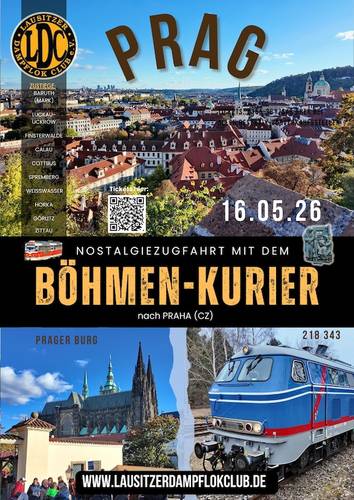 Wir starten dieses mal in Baruth (Mark), durchqueren die schöne Oberlausitz und fahren am Rande des Isergebirges durch Mittelböhmen mit traumhaften einmaligen Anblicken aus dem Zug heraus. Wir durchfahren in Sychrov einen historischen Tunnel und in Turnov einen der größten Eisenbahnknoten in Böhmen.