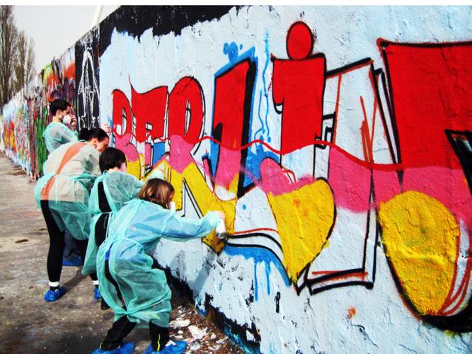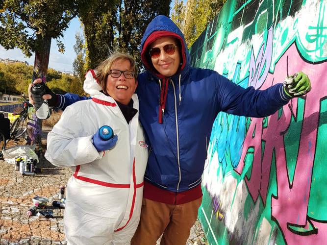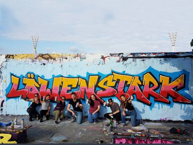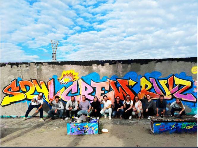 Beim Graffitiworkshop Berlin werdet ihr selber zum Graffitisprüher. Ihr erlernt die typischen Begriffe und Arbeitswerkzeuge der „Writer“ und werdet für einige Zeit selber zum echten Graffitiwriter. Nach einem ersten spannenden Einblick in die „Styles“ gehen wir über in die Buchstabenlehre und fertigen zusammen erste Skizzen auf Papier an. Nach der Einführung zum Umgang mit der Sprühdose/Can könnt ihr selber loslegen. Unsere Workshopleiter zeigen euch alle Techniken an der Wand und helfen euch mit der Sprühdose ein eigenes „graffiti piece“ zu malen. Graffiti ist Ausdruck des urbanen Lebensgefühls. An der Wand könnt ihr selber mit der Spraydose in der Hand Abstand vom Alltag bekommen, in diese Kunst eintauchen und für ein paar Stunden dieses Gefühl der Freiheit erleben. Spaß, Freude und sich selber kreativ ausprobieren darum geht es bei unserem Graffiti Workshop im Mauerpark.