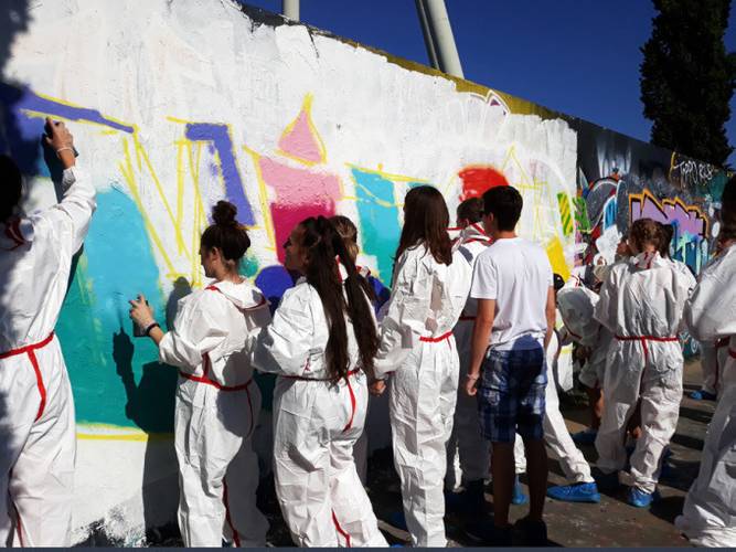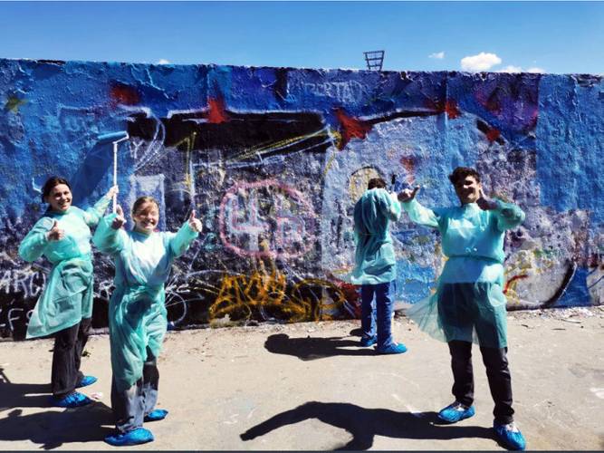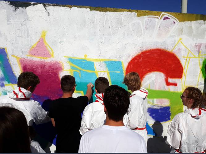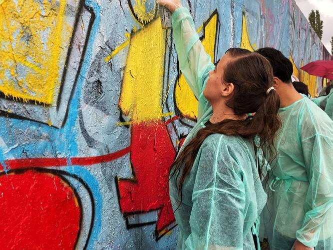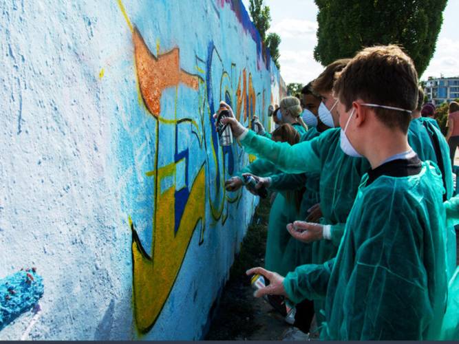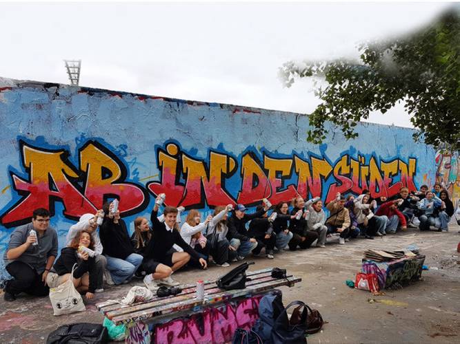 Du bist auf Klassenfahrt in Berlin oder eine Berliner/Brandenburger Schule und suchst ein Erlebnis, an das sich alle Teilnehmer*innen noch lange erinnern werden, dann bist Du bei uns genau richtig. Sprüht euren Schulnamen oder Klassenmotto an die Wand. 15 bis 150 Schüler*innen können gleichzeitig an diesem Workshop teilnehmen. Sie werden in Gruppen zu max. 30 Schüler*innen pro Profisprüher eingeteilt, die Lehrer sind kostenfrei.