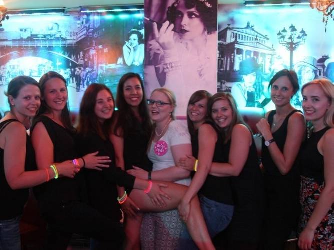 Im Knutschfleck Berlin könnt ihr euren Jungesellenabschied mal anders erleben bei der bunte Variete Show, ein bezauberndes 4 stündiges Entertainment- und Abendprogramm mit Livegesang, witziger Animation, atemberaubender Luft-Artistik, Hula Hoop, Livemusik am Saxophon, aufregenden Can Can, Burlesque-, Moulin Rouge-, Coyote-, Rock n Roll- und Chicago- Tanzshows könnt ihr bei leckeren Cocktails den Abend geniessen. Natürlich wird bei einem Jungesellenenabschied im Knutschfleck Berlin die Braut / Bräutigam auch in die Show einbezogen und es erwarten euch weitere Überraschungs-Acts, wie zum Beispiel Capoeira, Jongleure, Magier, Comedy oder andere neue Talente. Zwischen den Shows wird geschunkelt, mitgesungen, gefeiert bis unser DJ nach der Show die Bühne in einen bunten Dancefloor für Jung und Alt verwandelt. Im Knutschfleck haben wir auch zahlreiche Erlebnisse. Überrascht doch eure Braut mal mit einem Burlesque-Tanzkurs oder eurem Bräutigam mit einem Cocktailkurs oder Gin Tasting. Perfekt für euren Jungesellinenabschied. Im Knutschfleck der angesagtesten Cocktailbar am Alexanderplatz wird eure Junggesellenabschiedsparty zu einem unvergesslichen Erlebnis mit einem JGA Paket.
