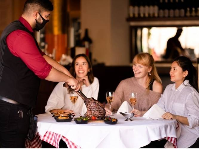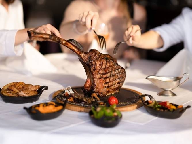 - Main course: tomahawk, dry-aged rib eye and Irish roast beef, including side dishes