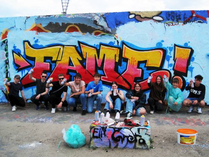 Du kannst das mit anderen Graffitiinteressierten unter professioneller Anleitung umsetzen. Lerne die verschiedenen Sprüh-Techniken kennen und hab Spaß mit anderen internationalen Künstlern! Super geeignet, um auch neue Leute mit ähnlichen Interessen kennenzulernen.