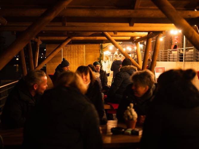 • Bier, Sekt, alkoholfreie Getränke, Glühwein, Punsch, heiße Schokolade, Kinderpunsch. Gegen Aufpreis gibt es auch zusätzliche Getränke (z.B. Longdrinks, Glühwein mit Schuss)