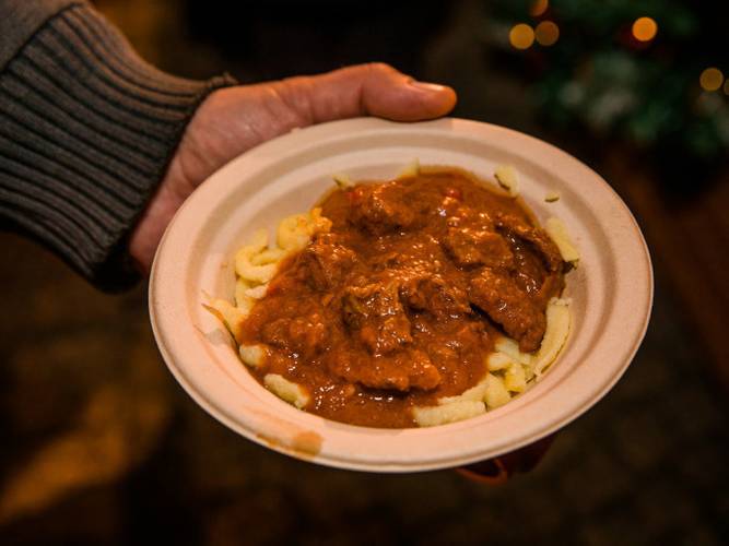 Pulled Christmas Pork Burger, Pilzpfanne, Chilli con Carne, Kürbissuppe, Laugenbrezeln, Crêpes, Waffeln, gebrannte Mandeln, Quarkbällchen, Germknödel mit Pflaumenragout
