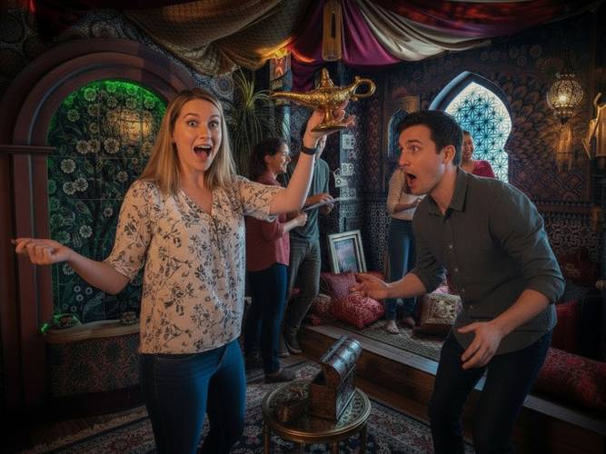 Unter dem Vorwand, die teuersten und prächtigsten Kleider des Orients zu schneidern, verschafft ihr euch eine Audienz beim Sultan, der ganz angetan von der Idee ist, sich in feinste Seide hüllen zu lassen. Ihr werdet gebeten, in den Gemächern des Sultans zu warten, bis dieser bereit ist seine Maße nehmen zu lassen. Es bleibt also nicht viel Zeit den Raum nach wertvollen Gütern zu durchsuchen, und hinter das Geheimnis des Reichtums Harun-Ar-Rashids zu gelangen.