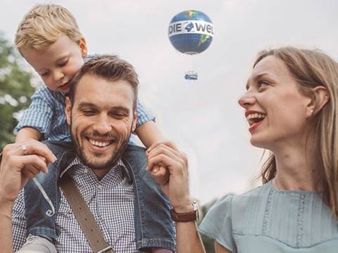 Highlights: • Aufstieg mit dem Weltballon auf 150 Meter Höhe • Panorama- Blick auf das wunderschöne Berlin • Great gift idea: Buy a voucher! Hints: Duration: 15 minutes Price: €64 (Standard (2 Erwachsene & 1 Kind (3-10 Jahre)) moreabout: Weltballon für Familien