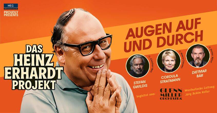 Heinz Erhardts Humor ist bis heute einzigartig: verspielt, doppelbodig und stets mit einem Augenzwinkern. Kaum ein(e) UnterhaltungskünstlerIn nach ihm beherrschte die Feinheiten der komischen und oft auch musikalischen Kommunikation mit dem Publikum so perfekt, um es zu amüsieren und zu unterhalten. Noch heute, mindestens zwei Generationen nach seinem Tod, erfreuen sich Alt und Jung an den Sketchen, Filmen, Liedern und wortwitzigen Gedichten des „Onkels der Nation“, wie ihn die „FAZ“ nennt. In „Augen auf und durch“ treffen seine zeitlosen Sketche, Gedichte und Chansons auf die Energie einer Big Band und die Bühnenpräsenz dreier AusnahmekünstlerInnen.