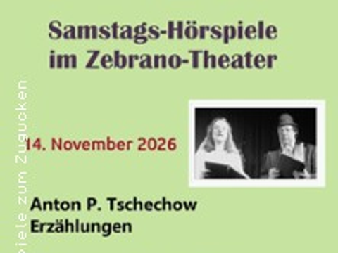 Samstags-Hörspiel Anton P. Tschechow: Von Eheleuten und anderen Narren. Hörspiele zum Zugucken. Geschichten und Anekdoten von Anton P. Tschechow. Die Medizin ist meine Ehefrau, die Literatur ist meine Geliebte! Die frühen Erzählungen des Arztes und... moreabout: Von Eheleuten und anderen Narren - Hörspiele zum Zugucken / Zebrano-Theater