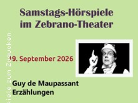 Samstags-Hörspiel Guy de Maupassant: Glück und andere schöne Lügen. Hörspiele zum Zugucken. Erzählungen von Guy de Maupassant. Guy de Maupassant schreibt mit Witz und Leichtigkeit über verbotene Liebesabenteuer, Doppelmoral und Übersinnliches. Da... moreabout: Glück und andere schöne Lügen - Hörspiele zum Zugucken / Zebrano-Theater
