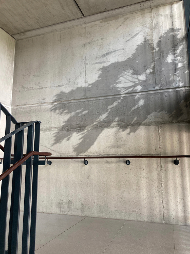 Der Entwurf ist geprägt von einem sehr poetischen Ansatz, der das Preisgericht durch seine konzeptuelle und visuelle Stärke überzeugen konnte. Das Wurzelwerk unter der Decke im Foyer bildet aufgrund der raumgreifenden Anordnung eine Willkommenssituation für alle Schulangehörigen und Besucher:innen und macht neugierig darauf, was aus den Wurzeln erwachsen könnte. Dies wird sichtbar im kleinen Lichthof des ersten Stockwerkes. Dort treffen die Schüler:innen auf einen vergoldeten Baum ohne Laub. Das Laub aber erscheint in den Treppenhäusern als Schattenwurf auf den Sichtbeton-Wänden. Alle Elemente – gleich ob abstrakt oder naturalistisch – regen die Fantasie an und lassen genügend Spielraum für eigene Assoziationen.
