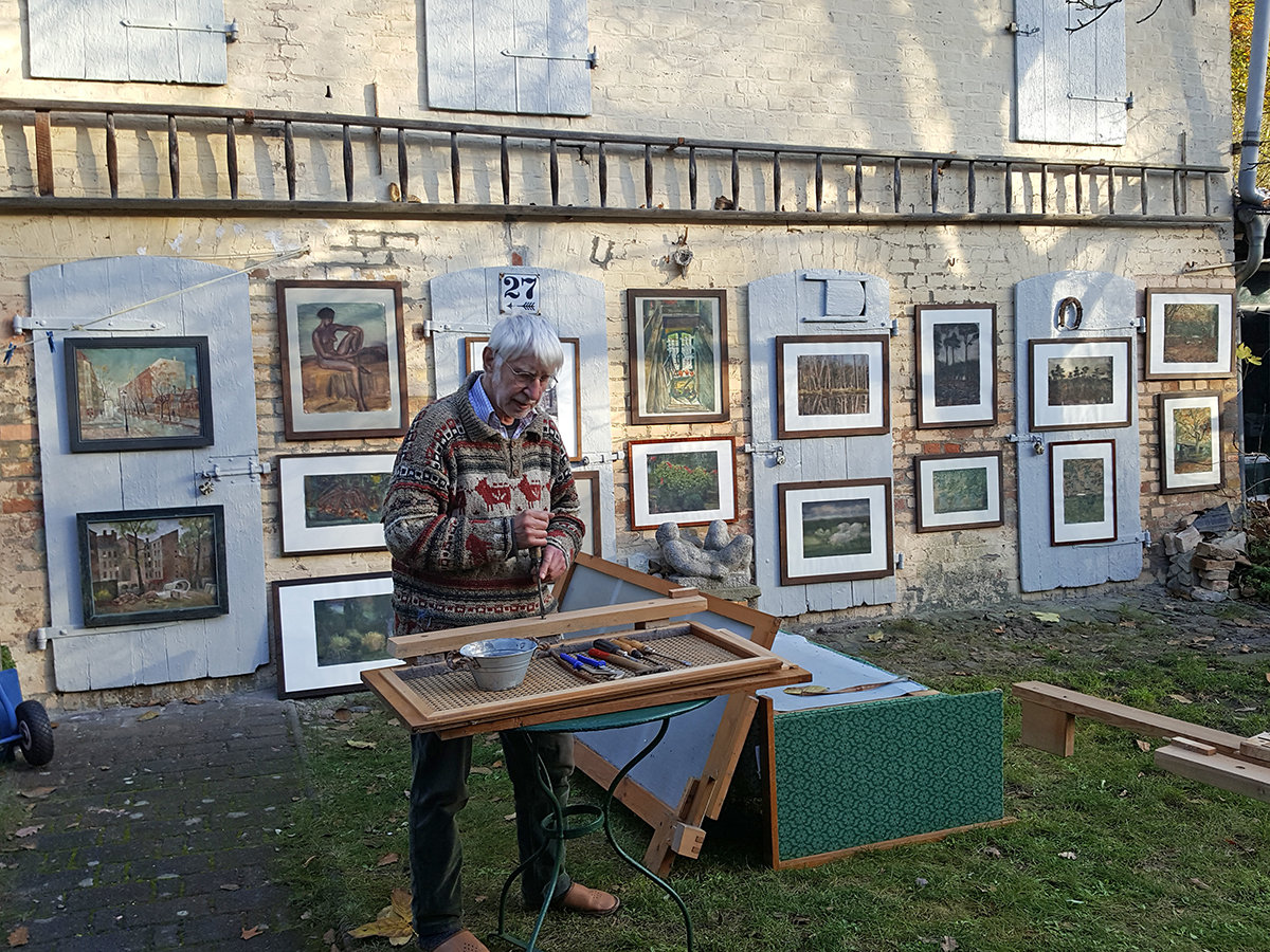 danken inspiriert. Zumeist auf dem Weg zu seiner Skatrunde oder vor dem Besuch der Gaststätte „Molle“ in der Wollankstraße machte er einen Abstecher in das Museum und portraitierte sein Gegenüber in seinem Skizzenbuch. Stets brachte er auch neue Ideen für die geplante Ausstellung „Butzmann in Pankow“ mit.