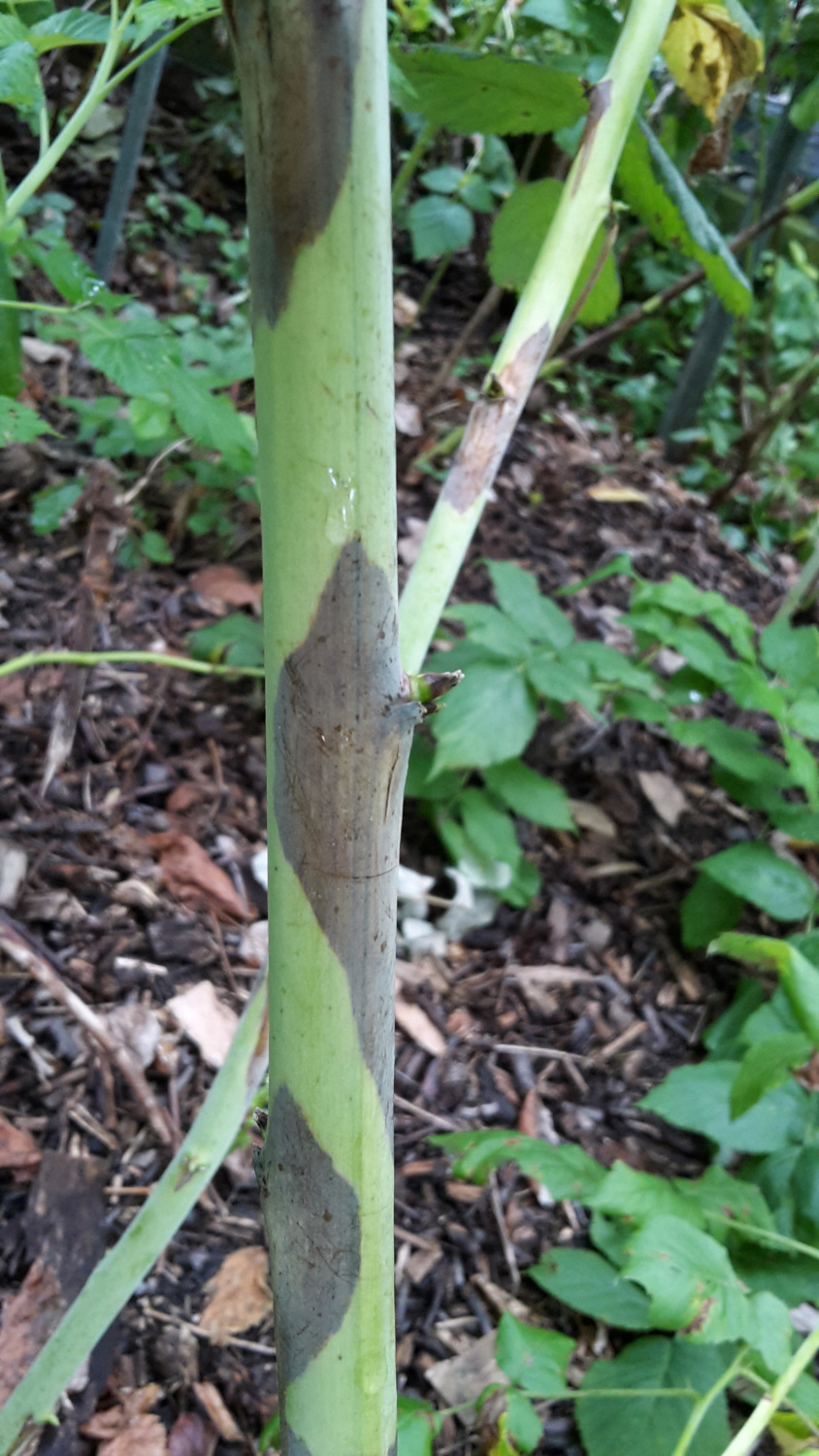Ursache ist ein ganzer Komplex verschiedener Faktoren. Diese als Himbeerrutensterben bezeichnete Krankheit wird meist durch mechanische Verletzungen an den Ruten und ein anschließendes Eindringen verschiedener pilzlicher Erreger verursacht.