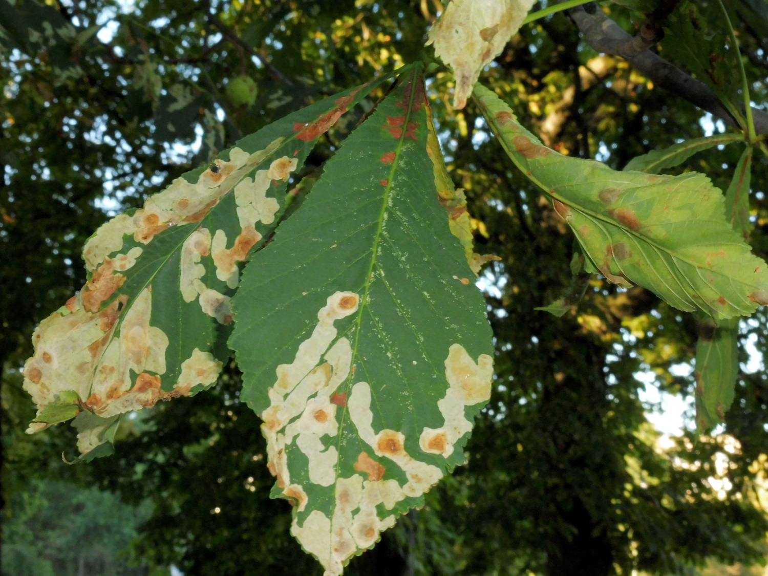 Entfernen Sie sorgfältig das Laub unter der Kastanie. Mit dem Laub werden überwinternde Stadien der Kastanienminiermotte entfernt. Durch diese Maßnahme wird das Auftreten der ersten Mottengeneration im Frühjahr um ca. 80% reduziert.