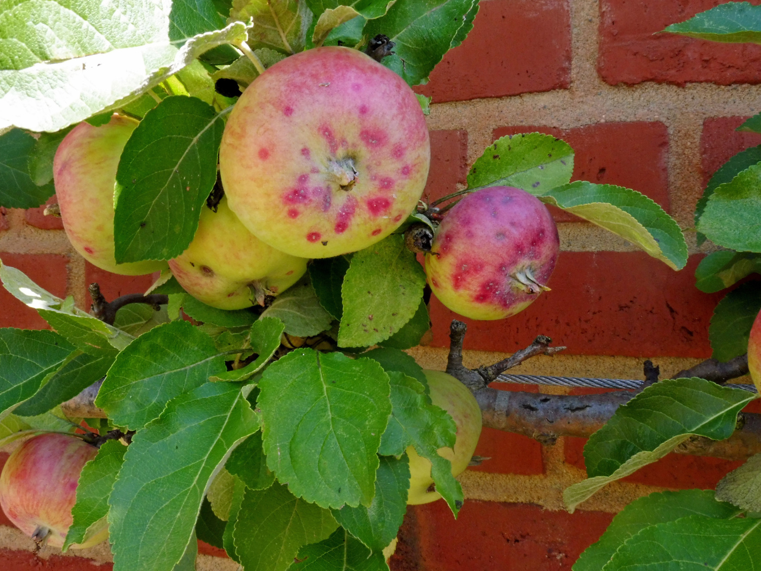 Diese Apfelsorten bringen nur in trockenen Jahren gesunde Früchte. In feuchten Jahren kann ein kräftiges Auslichten der Krone im Sommer und eine rechtzeitige Fruchtausdünnung den Befall etwas reduzieren. Vorbeugende Spritzbehandlungen mit zugelassenen Präparaten müssten auch im Hobbygarten frühzeitig bei Blattaustrieb einsetzen und bis Ende Juni in mehreren Wiederholungen erfolgen. Primärinfektionen erfolgen über die Blätter. Von hier aus bildet der Erreger massenhaft Sommersporen, die für die Infektion der Früchte sorgen. Zur Behandlung kommt der Wirkstoff Difenoconazol in Frage.