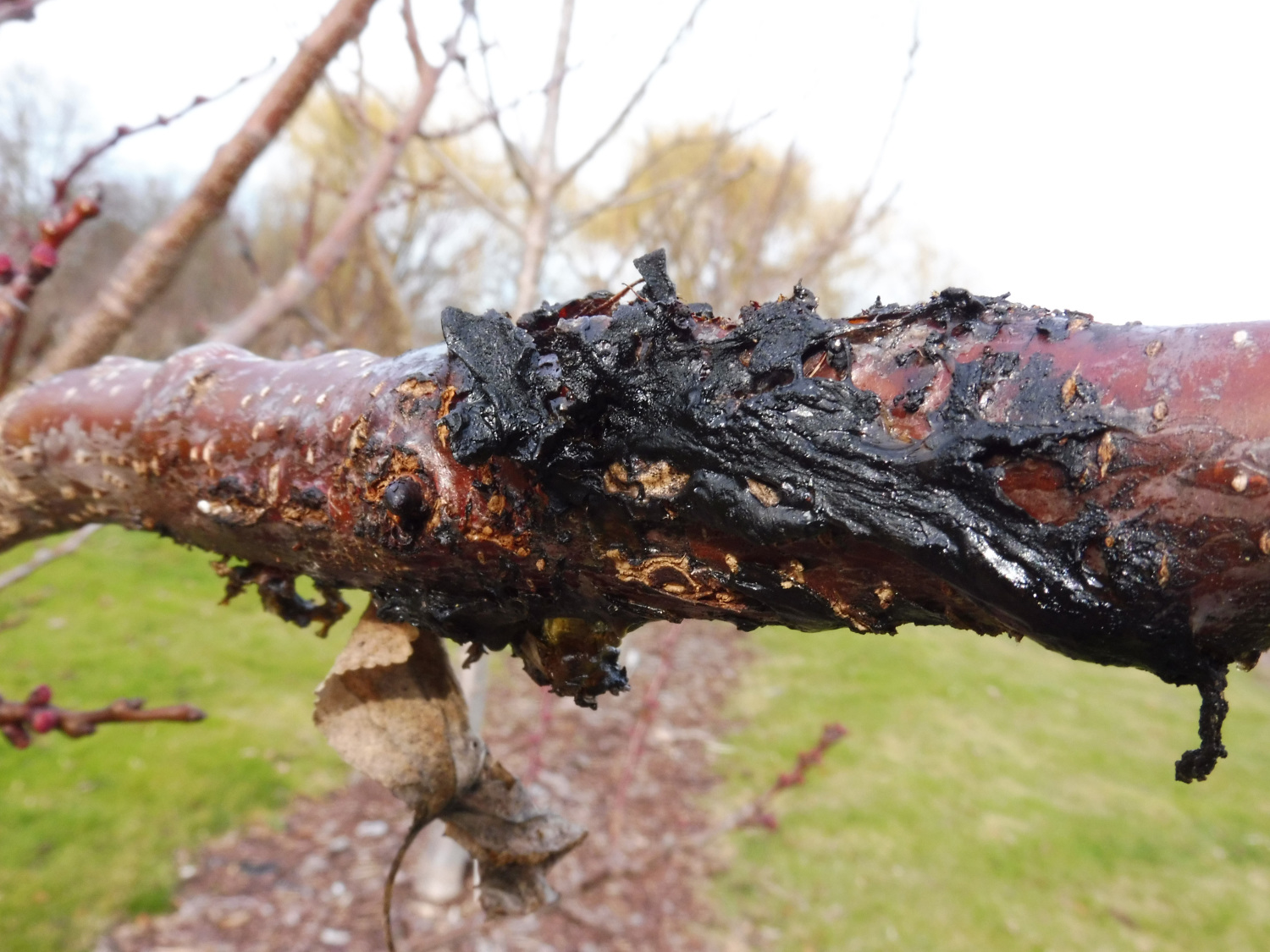 Ursache ist die Infektion durch die Monilia-Spitzendürre, eine typische Pilzkrankheit beim Steinobst. Die Sporen der weit verbreiteten Krankheit sind im Naturhaushalt “allgegenwärtig” und finden gute Infektionsbedingungen, wenn zur Zeit der Kirschblüte nasskaltes Wetter herrscht. Die Krankheit dringt über die Blüte in den dahinter befindlichen Zweig und lässt diesen trocken werden. Die Krankheit durchdringt meist nur den vorjährigen Zuwachs des Zweiges. Tiefer gelangt die Krankheit nicht ins Gehölzinnere. Deshalb ist es auch sinnvoll unmittelbar nach dem Sichtbarwerden der Welke, diese Zweigpartien zu entfernen. Denn ältere Astbereiche sind durchaus in der Lage gesunde Neutriebe aus “schlafenden” Knospen zu bilden, die für den Aufbau einer gesunden Krone sorgen.