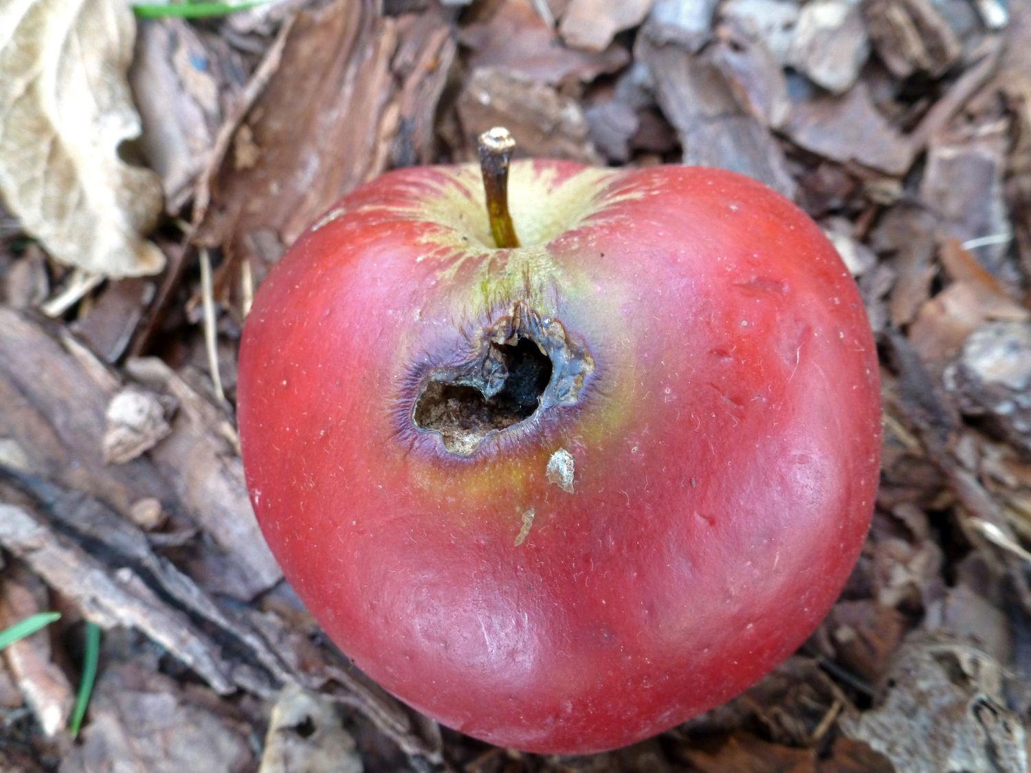 Fäule durch Bohrloch nach Apfelwicklerbefall
