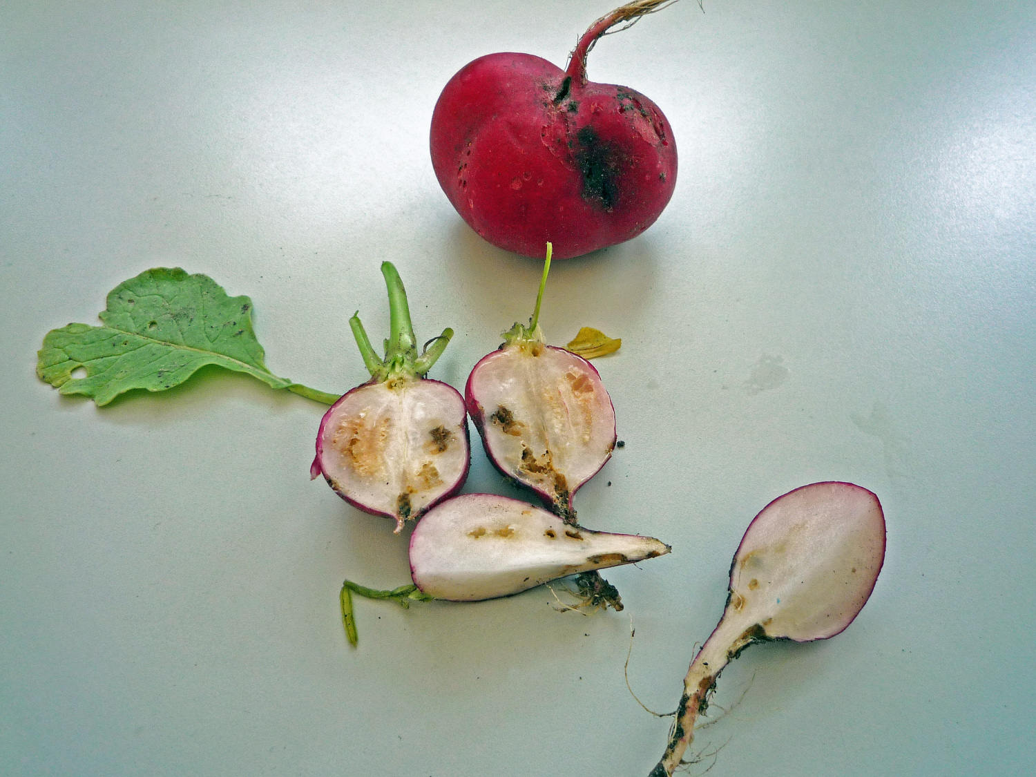 Die Ursache für madiges Wurzelgemüse, Welken und Umfallen von Bohnenjungpflanzen sind der wiederholte Befall mit Gemüsefliegen. Auf die einzelnen Gemüsearten spezialisierte Fliegen (Möhrenfliege, Rübenfliege, Zwiebelfliege, Kohlfliegen, Bohnenfliege) legen ihre Eier an die ausgewählte Pflanze im zeitigen Frühjahr am Boden ab (zum Zeitpunkt der Löwenzahnblüte – Mitte/Ende April). Die aus den Eiern schlüpfenden Maden fressen die Feinwurzeln ab, dringen dann in den Wurzelkörper ein bzw. schädigen Keimlingsblätter. Der Befall kann zusätzlich von Pflanzen schädigenden Pilzen begleitet werden. Es können jährlich bis zu zwei Generationen der speziellen Gemüsefliegenarten auftreten.