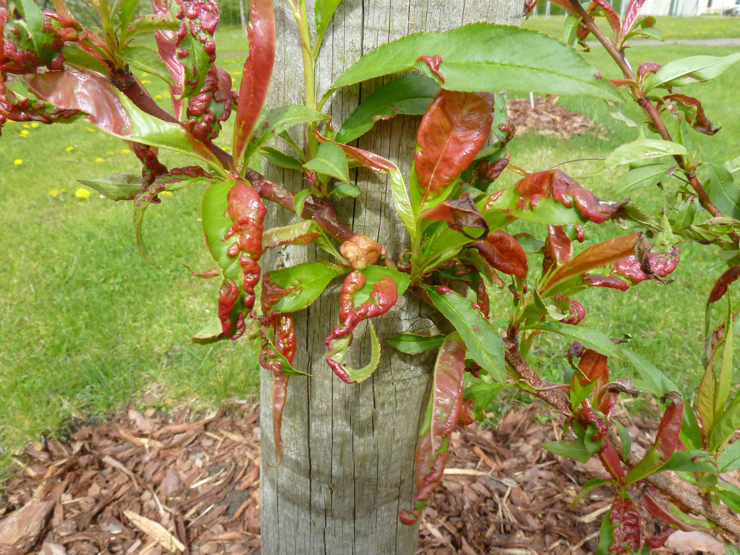 Verursacher ist eine Pilzkrankheit – die Kräuselkrankheit beim Pfirsich. Auch Nektarinen können befallen werden. Die Infektionen durch den Erreger finden schon sehr früh im Jahr statt, bei mildem Wetter schon im Februar. Dies gilt es durch rechtzeitig schützende Spritzbehandlungen zu verhindern. Hierfür stehen auch im Hobbygarten seit einiger Zeit zugelassene Pflanzenschutz- und Pflanzenstärkungsmittel zur Verfügung. Beginn der Behandlungen sollte der Zeitpunkt des Knospenschwellens sein und im Abstand von jeweils 10 bis 14 Tagen sind ein bis zwei Wiederholungsbehandlungen sinnvoll. Pflanzenschutzmittel gegen diese Krankheit basieren derzeit ausschließlich auf dem Wirkstoff Difenoconazol. Aber auch Pflanzenstärkungsmittel, die Steinobst widerstandsfähig gegenüber Pilzkrankheiten werden lassen, können wiederholt eingesetzt werden.