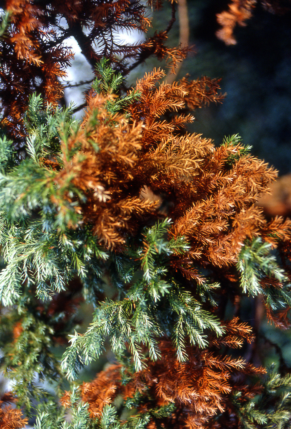 Das Verbräunen der Nadeln ist ein normaler Vorgang bei Nadelgehölzen und keine Krankheit. Man spricht hierbei auch vom Putzen der Gehölze. Auch immergrüne Pflanzen müssen sich von ihren alten und verbrauchten Nadeln säubern. Abhängig von bestimmten Stressfaktoren wie beispielsweise Pflanzschock, extreme Witterungsverhältnisse etc. kann dieser physiologische Nadelabwurf sehr ins Auge fallen. Nach wenigen Wochen ist der Vorgang jedoch abgeschlossen und das Gehölz erscheint wieder komplett grün.