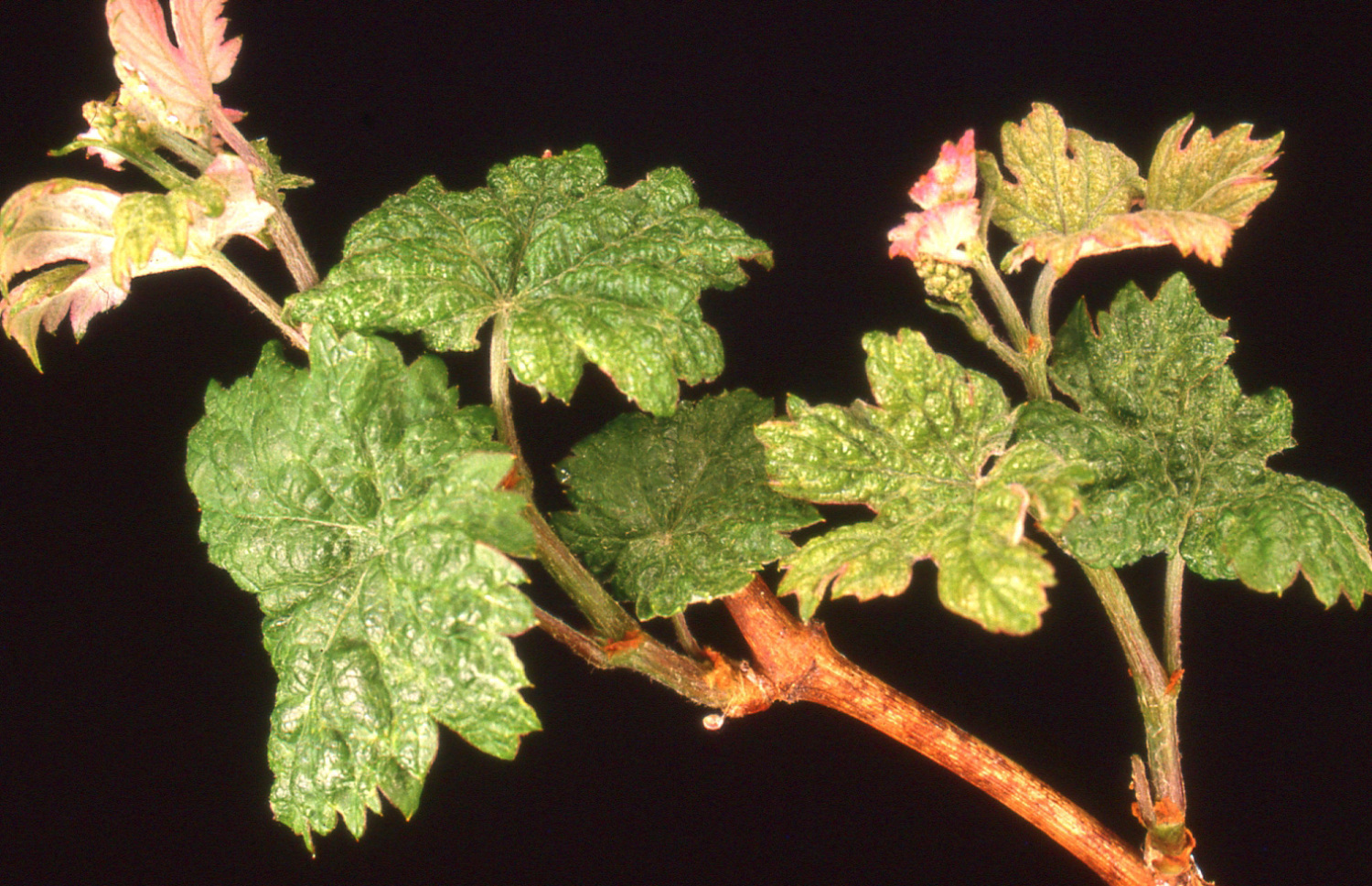 Nein. Verursacher dieser Symptome sind mikroskopisch kleine Milben, Rebenpockenmilben. Diese überwintern in den Knospen des Weinstockes und besiedeln nach dem Austrieb die Pflanze. Sie besaugen vorzugsweise die weichen ersten Blätter der Rebe. An den Saugstellen entstehen dann die beschriebenen Pocken. Erfahrungsgemäß lässt der Befall im Verlauf des Sommers deutlich nach. Neue Blätter werden dann kaum mehr befallen.